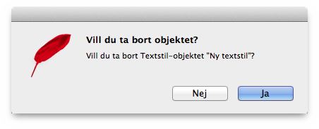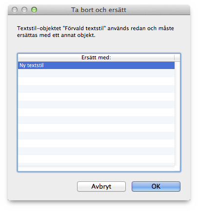 Genom att klicka på [–]-knappen nere till vänster i Textstilsgranskaren tar du bort den markerade textstilen. Om den har använts någonstans i dokumentet måste du välja en textstil som ersättning.