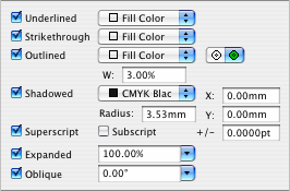 Stín může mít poloměr a ve vodorovném směru (X) a svislém (Y) nezávisle nastavenou vzdálenost.