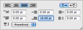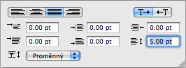 Zde určíte, je-li text zarovnán doleva, doprava, na střed nebo do bloku. Můžete například v textu, který formátujete používat prevítko na levý praporek, ale část textu zarovnat doprava.