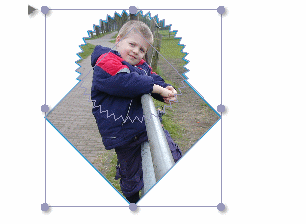 Příklad 2 používá také dva jednoduché tvary a k tomu obrázek. U obou tvarových rámečků je výplň nastavena jako transparentní a taj je aktivován jako ořezová cesta. Tím da dají docílit zajímavé maskovací efekty.