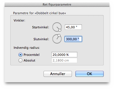 Et cirkeludsnit er beskrevet med en startvinkel og en slutvinkel. De