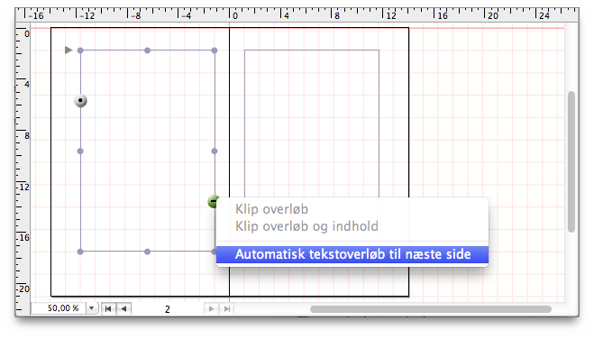 Vælg den venstre tekstramme og foretag et [Control]-klik på
