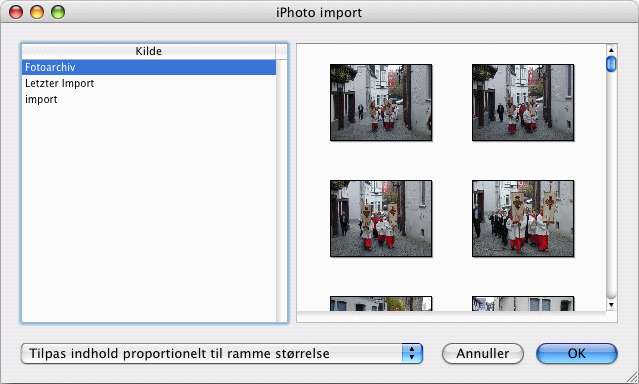 menupunkt et iPhoto oversigtsvindue, hvor du kan vælge hvilket