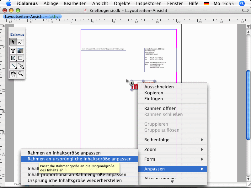 størrelse nu. Hold [Control] tasten nede, og klik på logo-rammen