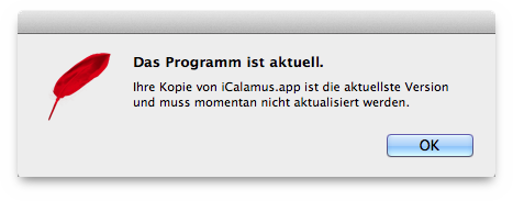 Mit diesem Menüpunkt können Sie jederzeit prüfen, ob es Updates zu iCalamus oder iCalamus-Modulen gibt. In der Regel werden Sie allerdings folgende Meldung sehen, die mitteilt, dass Ihr iCalamus auf dem neuesten Stand ist: