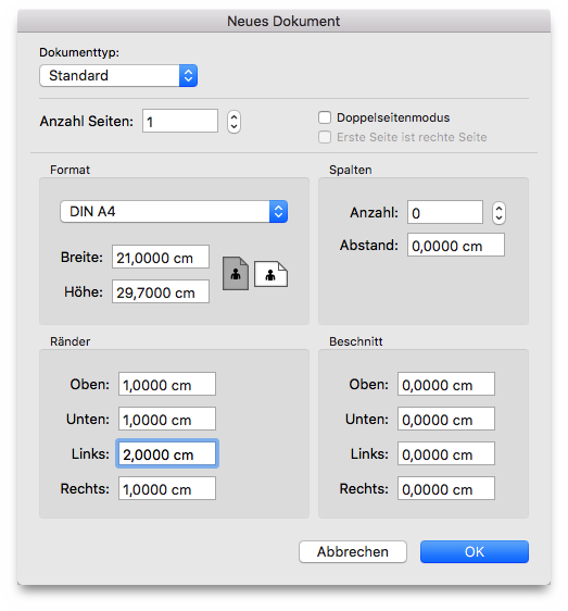 2-cm-Rand (zum Abheften), oben, rechts und unten erstmal 1 cm Rand.