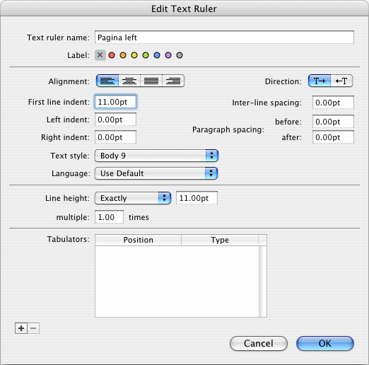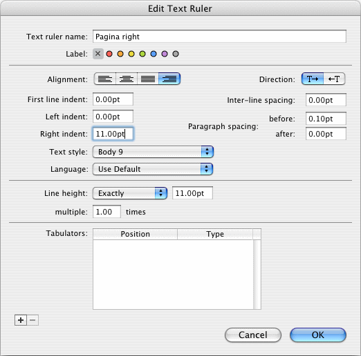 Hint: You can easily assign text rulers to empty text frames by double-clicking on the text frame. When the text ruler becomes visible, click on its name. You will then see a menu where you can select the wanted text ruler.