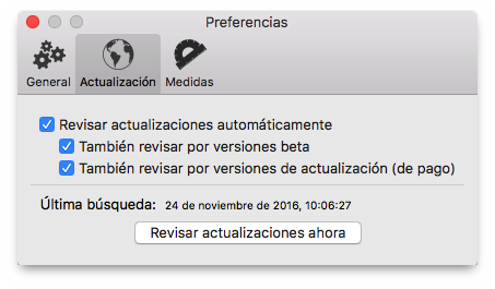 iCalamus puede activar la opción de revisar automáticamente si hay nuevas actualizaciones para iCalamus o para los plug-ins de iCalamus al ejecutar el programa. Alternatívamente, la revisión de actualizaciones puede iniciarse manualmente desde esta ventana.