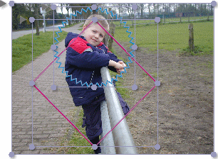 El ejemplo 2 además usa dos cuadros de formas simples más una imágen. Los colores del cuadro de forma han sido fijados como transparentes y el contorno ha sido activado como un trazo de recorte. Esto produce un resultado de máscara bastante interesante.