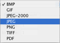 Zeit stehen folgende Formate zur Auswahl: BMP, GIF, JPEG-2000, JPEG,
