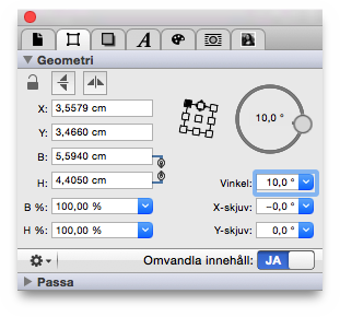 Det går också att flytta och ändra storlek numeriskt genom geometrigranskaren, som beskrivs separat. Varje knapp och reglage i den beskrivs i detalj i referenshandbokens kapitel.