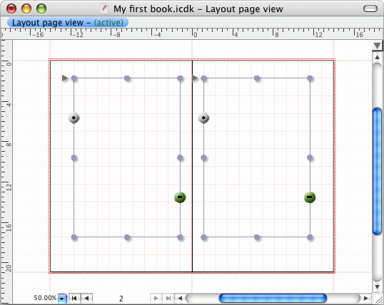 Lägg nu till en andra textram på den vänstra dokumentsidan, enligt samma regel. Se till att det finns två tomma spalter utanför den vänstra textramen (denna gång är de till vänster om ramen).